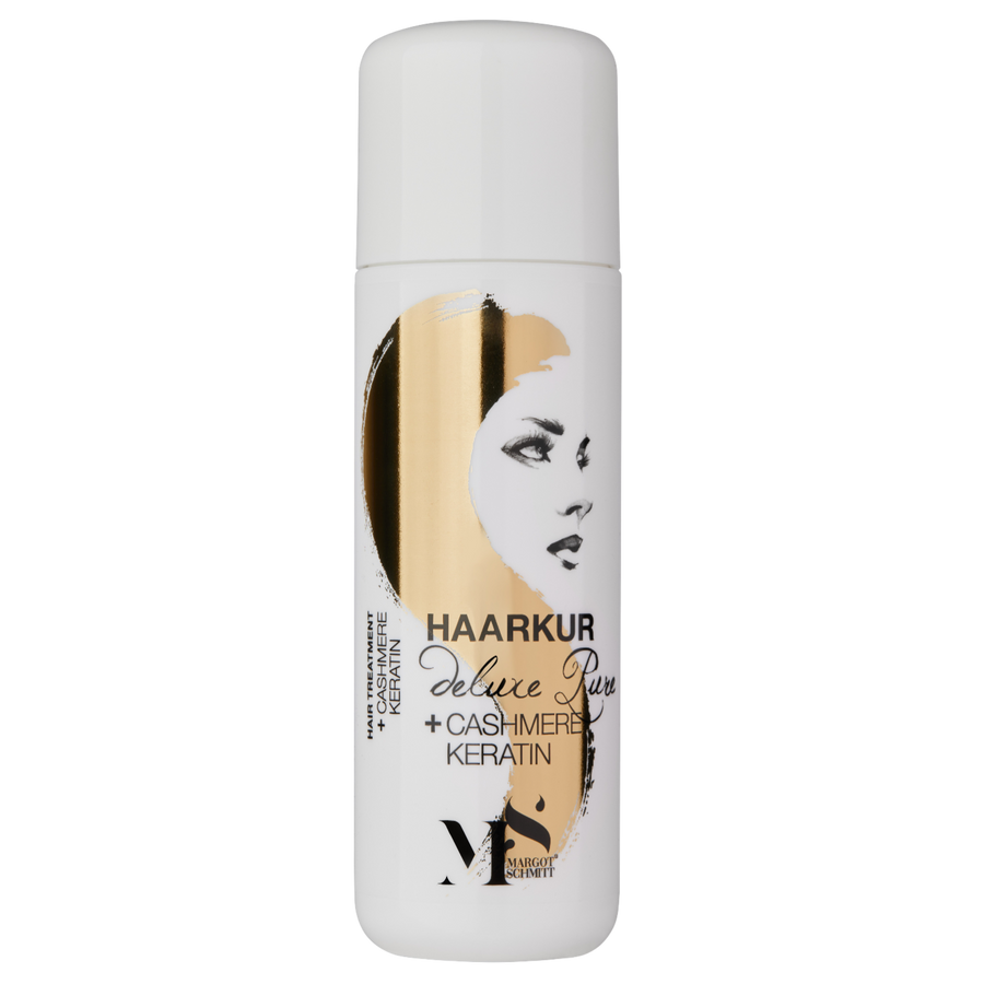 Die DELUXE PURE Haarkur mit edlem Cashmere-Keratin und Panthenol kann das Haar tief im Inneren mit Keratin auffüllen, die Haarstruktur reparieren und die Haarfasern nachhaltig stärken und aufbauen. Sie spendet Feuchtigkeit, verleiht Sprungkraft und seidig schimmernden Glanz. Keratin kann Spliss und Haarbruch vorbeugen.