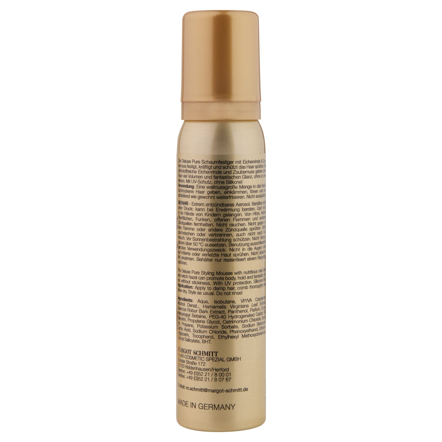 Der DELUXE PURE Schaumfestiger mit Eichenrinde & Zaubernuss festigt, kräftigt und schützt Ihre Haare mit spür- und sichtbar mehr Volumen und Glanz. Das Schön-Macher-Vitamin Panthenol sorgt zusätzlich für die nötige Feuchtigkeit, die mit verantwortlich ist für die natürliche Schönheit Ihres Haares. Mit sichtbar mehr Fülle, dauerhafter Festigung und wunderschönem Glanz ist der feinporige Schaumfestiger besonders leicht vom Haar aufzunehmen. Der DELUXE PURE Schaumfestiger ist für jede Haarqualität und jede Haarlänge geeignet, auch feine Haare bekommen den richtigen Schwung und das bei voller Flexibilität.