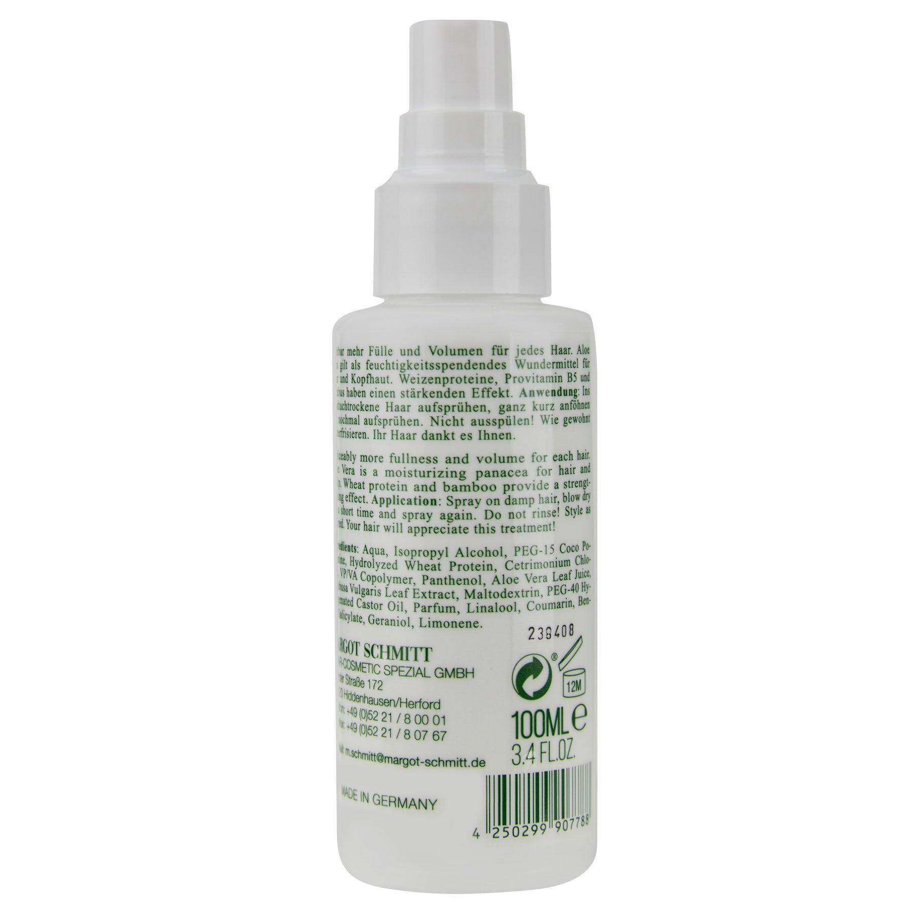Anwendung: Ins handtuchtrockene Haar sprühen und gut kämmen. Nicht ausspülen! Wie gewohnt weiterfrisieren!