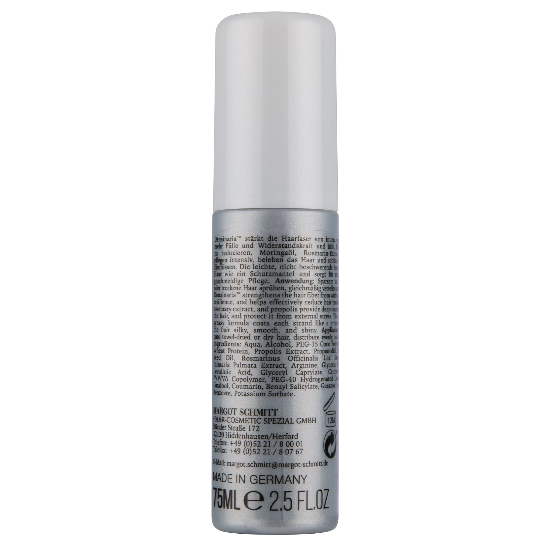Das Anti-Haarbruch Serum mit Densinaria™ stärkt das Haar von innen heraus, reduziert Haarbruch nachweislich und schützt effektiv vor Spliss. Hochwertige Pflegewirkstoffe wie Moringaöl, Rosmarin-Extrakt, Propolis, Weizenprotein und Panthenol pflegen intensiv und schützen vor Hitze, UV-Strahlen und Umwelteinflüssen. Die leichte Sprühformel verleiht seidigen Glanz, ohne zu beschweren.